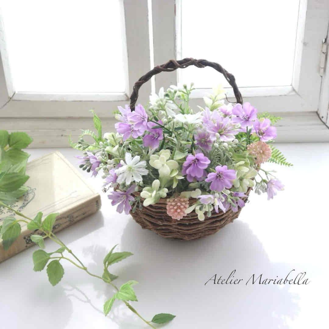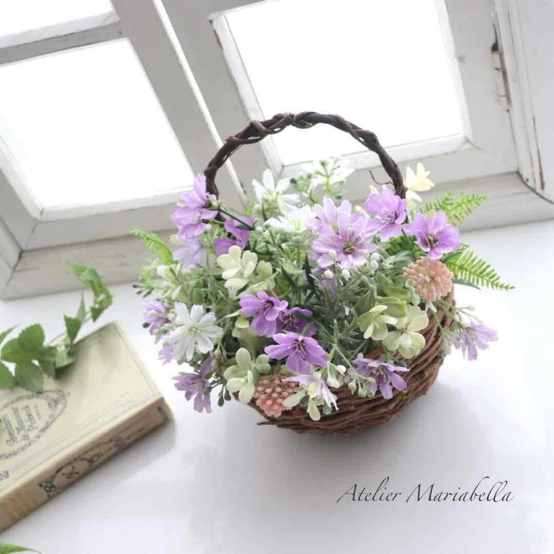 ナチュラルなバスケットに盛り沢山の小花。